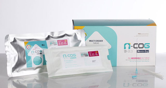 N-COG(エヌコグ)リフトはNewton Cog(ニュートンコグ)の略で、溶ける(皮膚内で吸収される)安全な素材で作られた、特殊な糸を使ったリフトアップ治療です。 糸についているコグ(とげ)がたるんだ皮膚をリフトアップさせます。